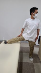 ②片足を乗せてつま先を真っ直ぐにする